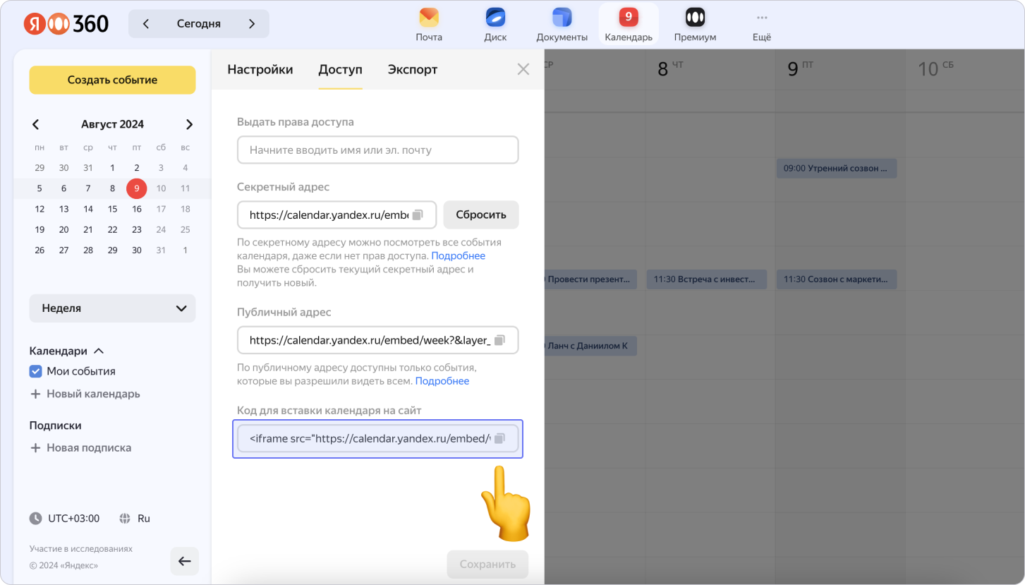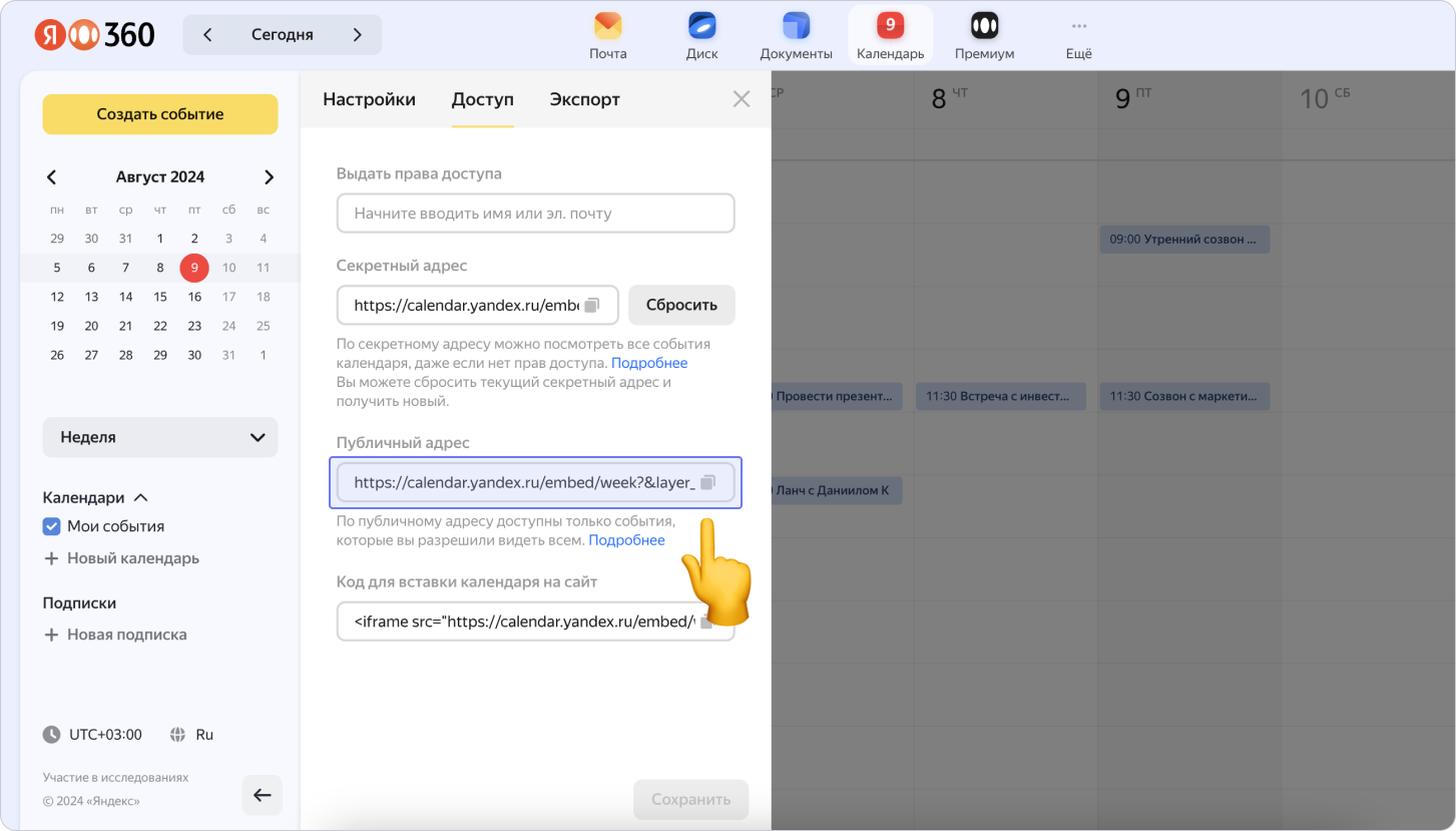 Как встроить Яндекс Календарь в приложения проекта с помощью ссылки