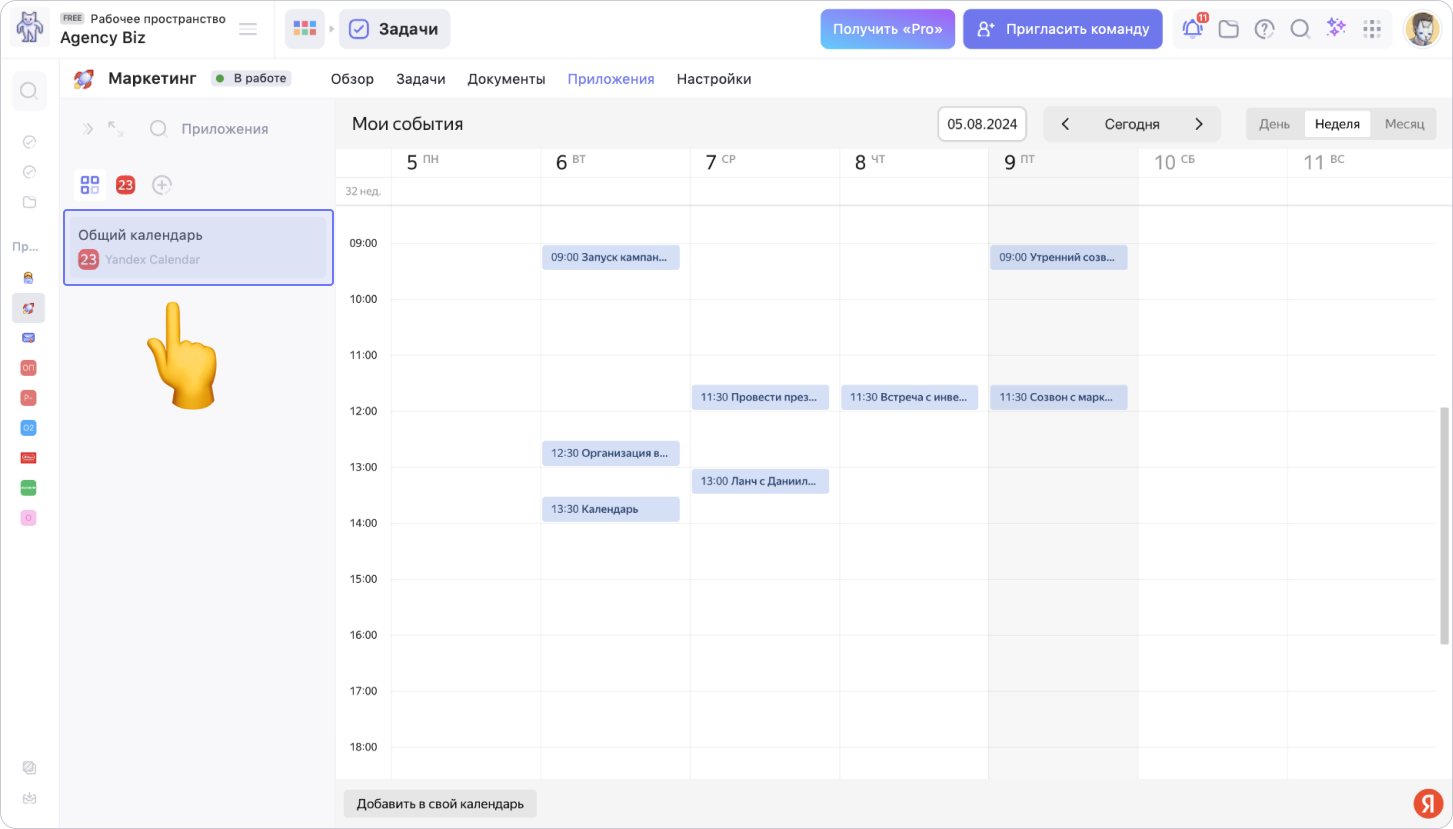 Прикрепляй Яндекс Календари к проектам и работай с ними прямо из Weeek