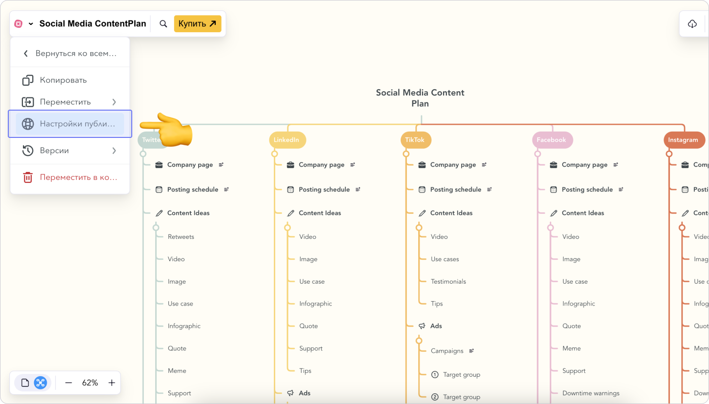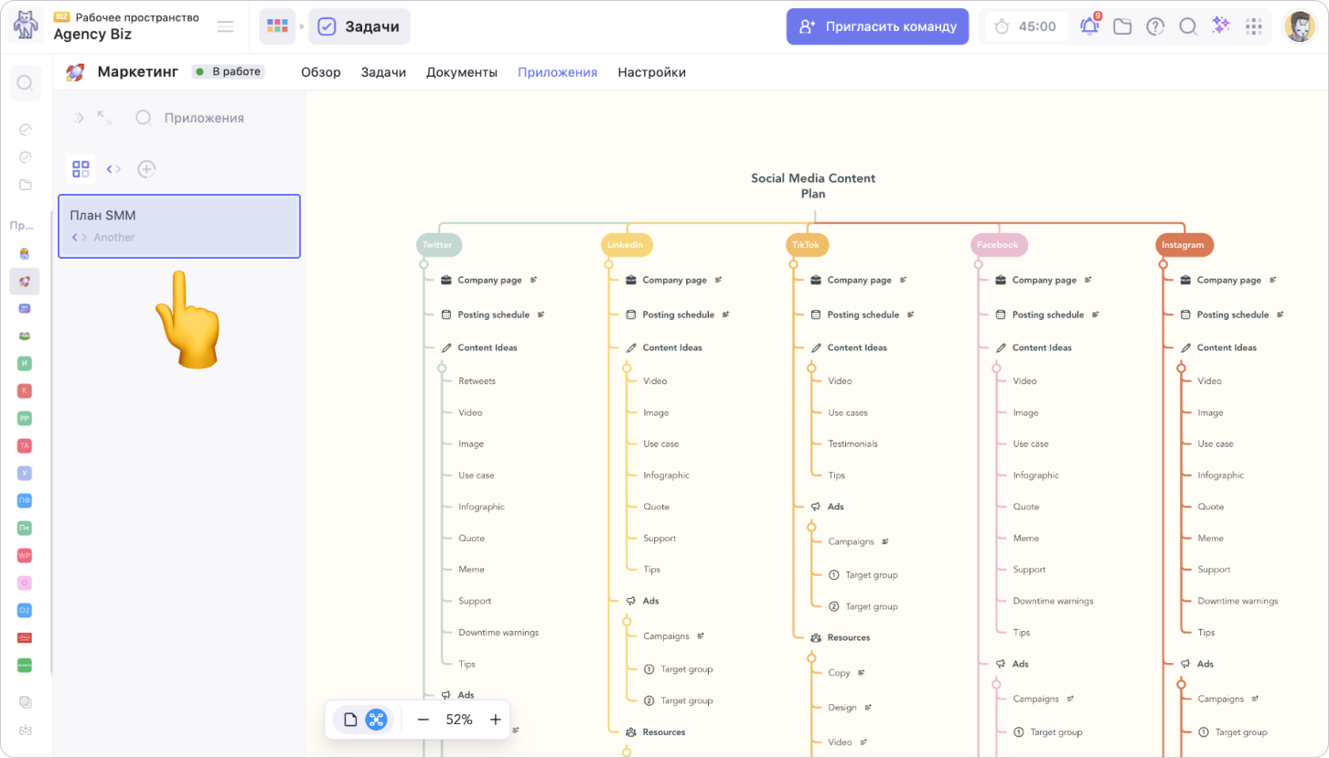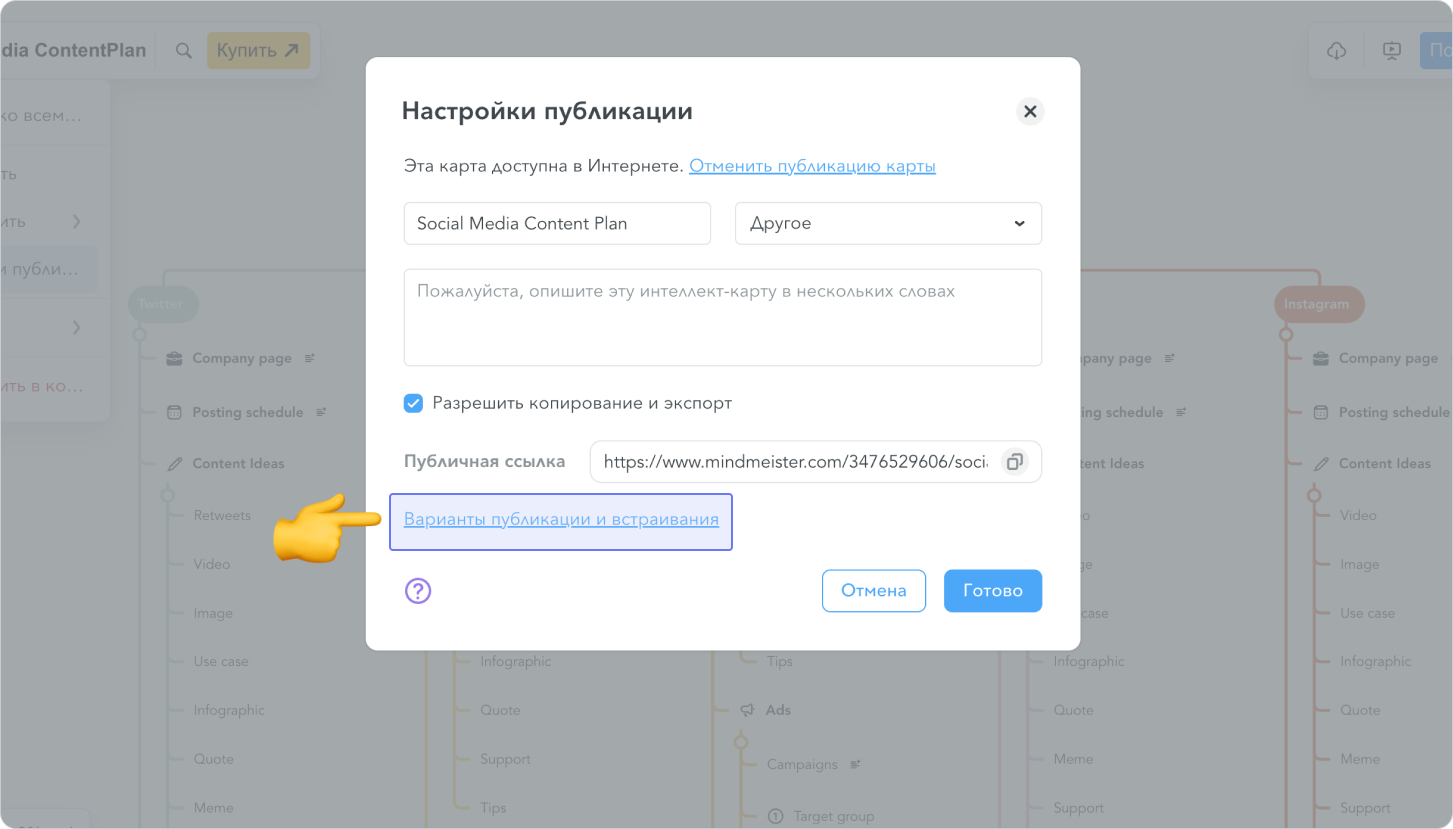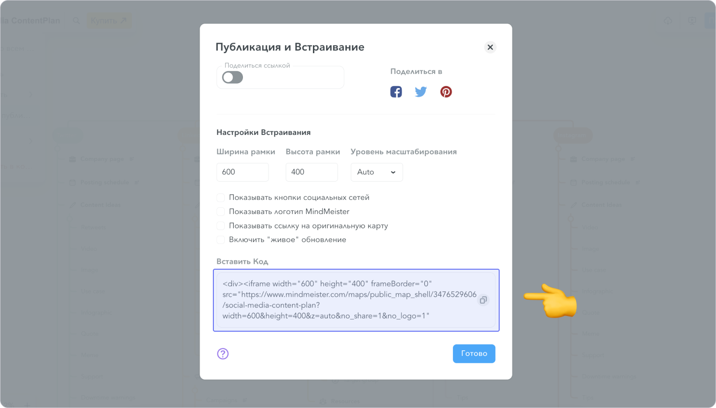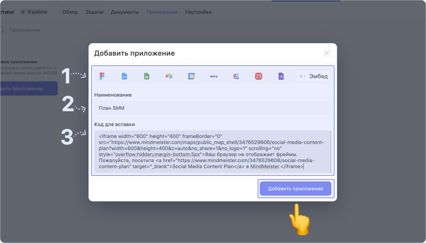 Принцип подключения приложений по embed-коду обычно одинаковый. В этой инструкции мы рассмотрим подключение на примере приложения для создания интеллект-карт MindMeister