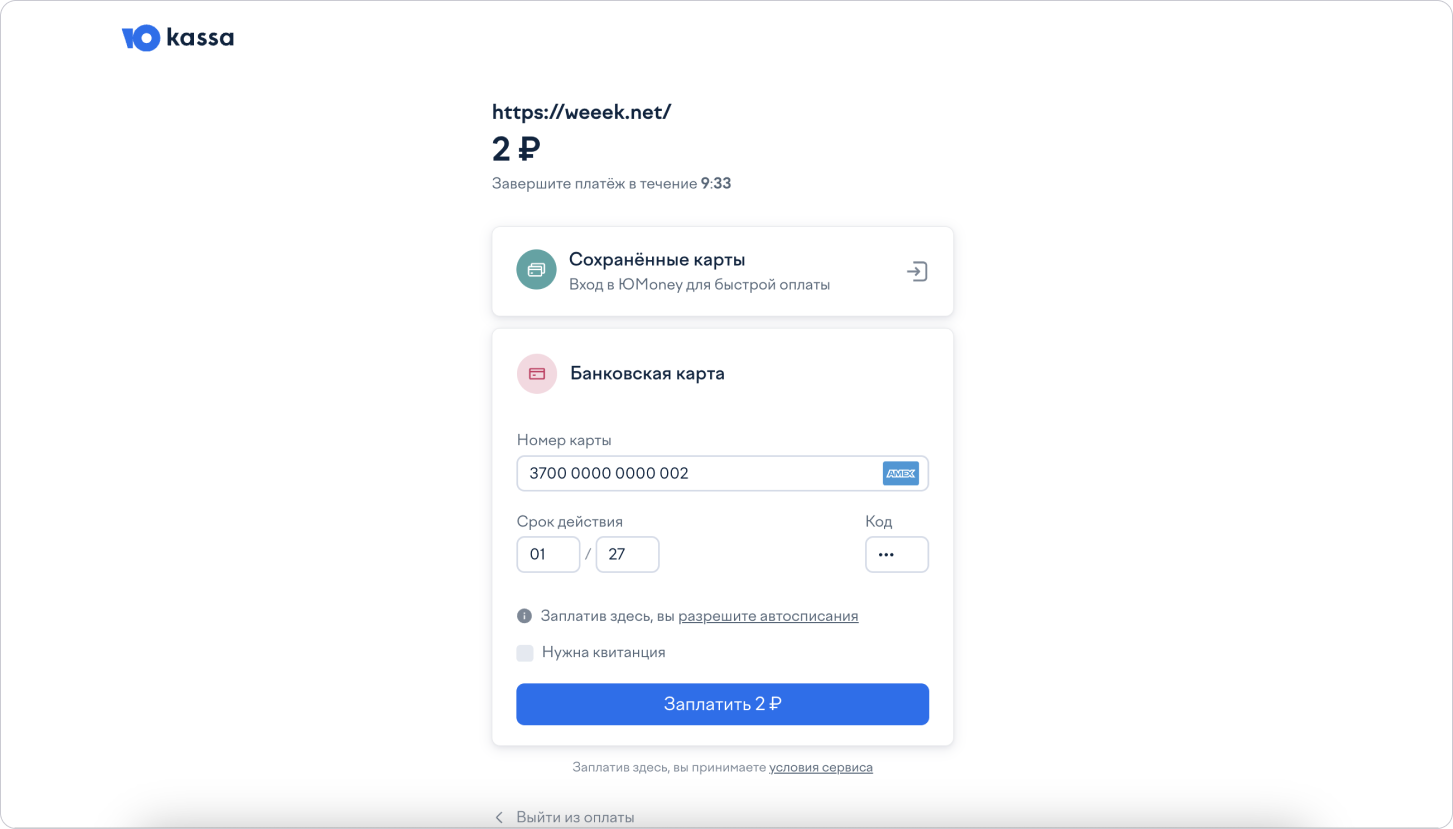 В открывшейся странице введи платёжные данные карты и нажми на кнопку оплаты