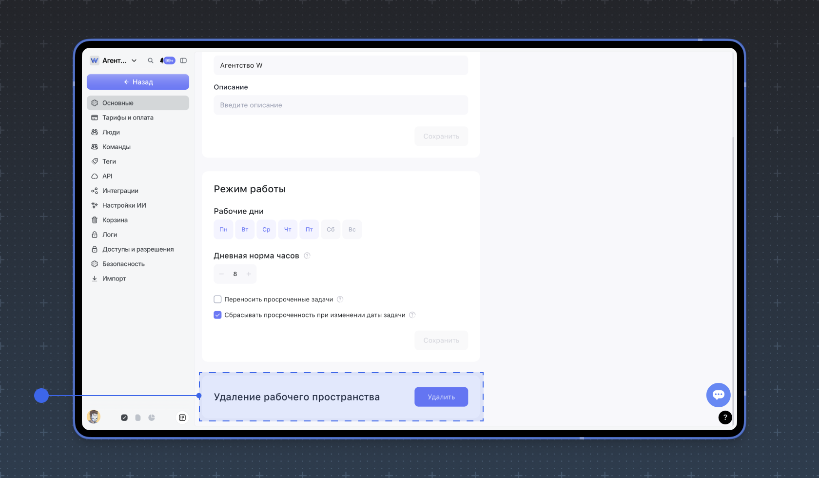 Как создать, удалить и настроить рабочее пространство в WEEEK